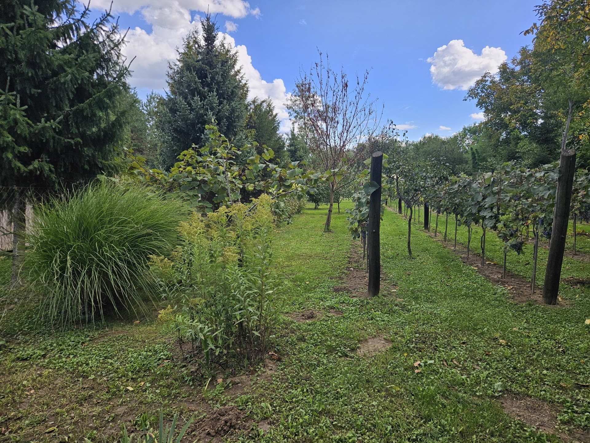 A telek rendezett, gondozott, jelenleg 3 éves othelló szőlő ültetvény található rajta, amely biztosítja a kellemes környezetet és akár saját termést is.
